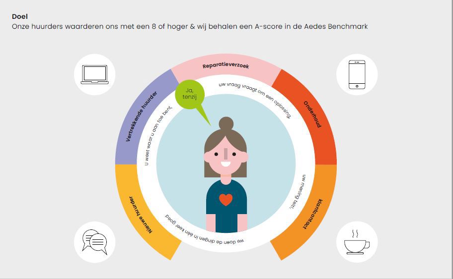 We werken vanuit vertrouwen en volgens het principe ‘ja, tenzij’. We helpen de huurder en elkaar altijd verder. We zijn betrouwbaar en duidelijk in onze klantbelofte en creëren een cultuur waarin onze huurder zich welkom voelt. De kwaliteit van de langdurige relatie met onze huurder staat voorop. Wij zorgen ervoor dat onze huurder zich gezien en gehoord voelt. We zetten in op eenduidige, transparante en voorspelbare dienstverlening. We geven altijd hetzelfde antwoord op dezelfde vraag ongeacht op welke manier of aan welke medewerker de vraag wordt gesteld.