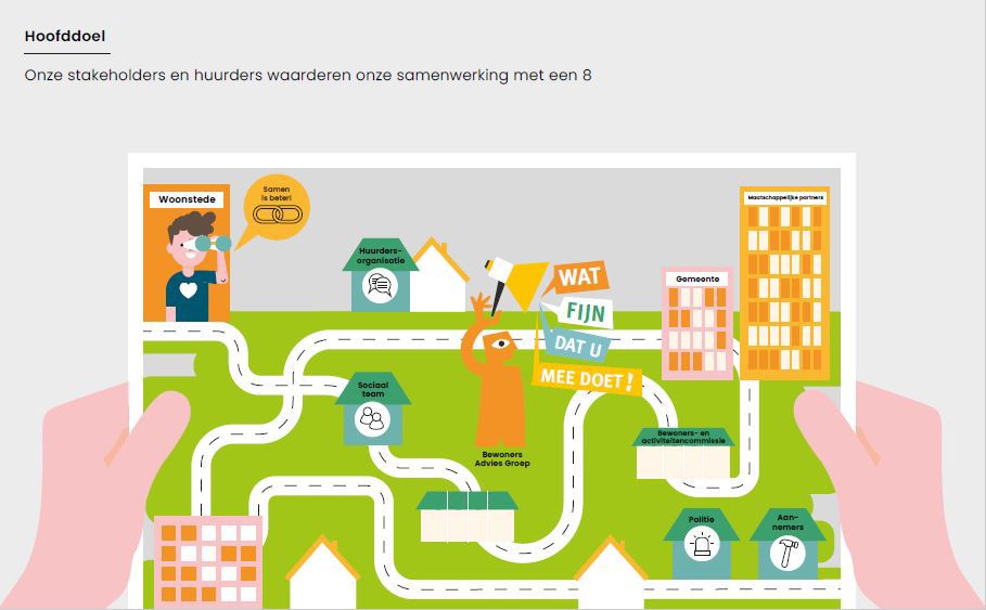 Met stakeholdermanagement brengen we belangen en standpunten van onze samenwerkingspartners in beeld. We investeren in een duurzame relatie met onze omgeving. Onze samenwerking is erop gericht onze huurders een thuis bieden en een bijdrage te leveren aan hun welzijn.