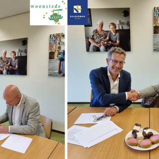 Vanochtend ondertekenden Woonstede en Kelderman Bouw B.V. de overeenkomst voor acht nieuwbouwwoningen aan Soembahof.