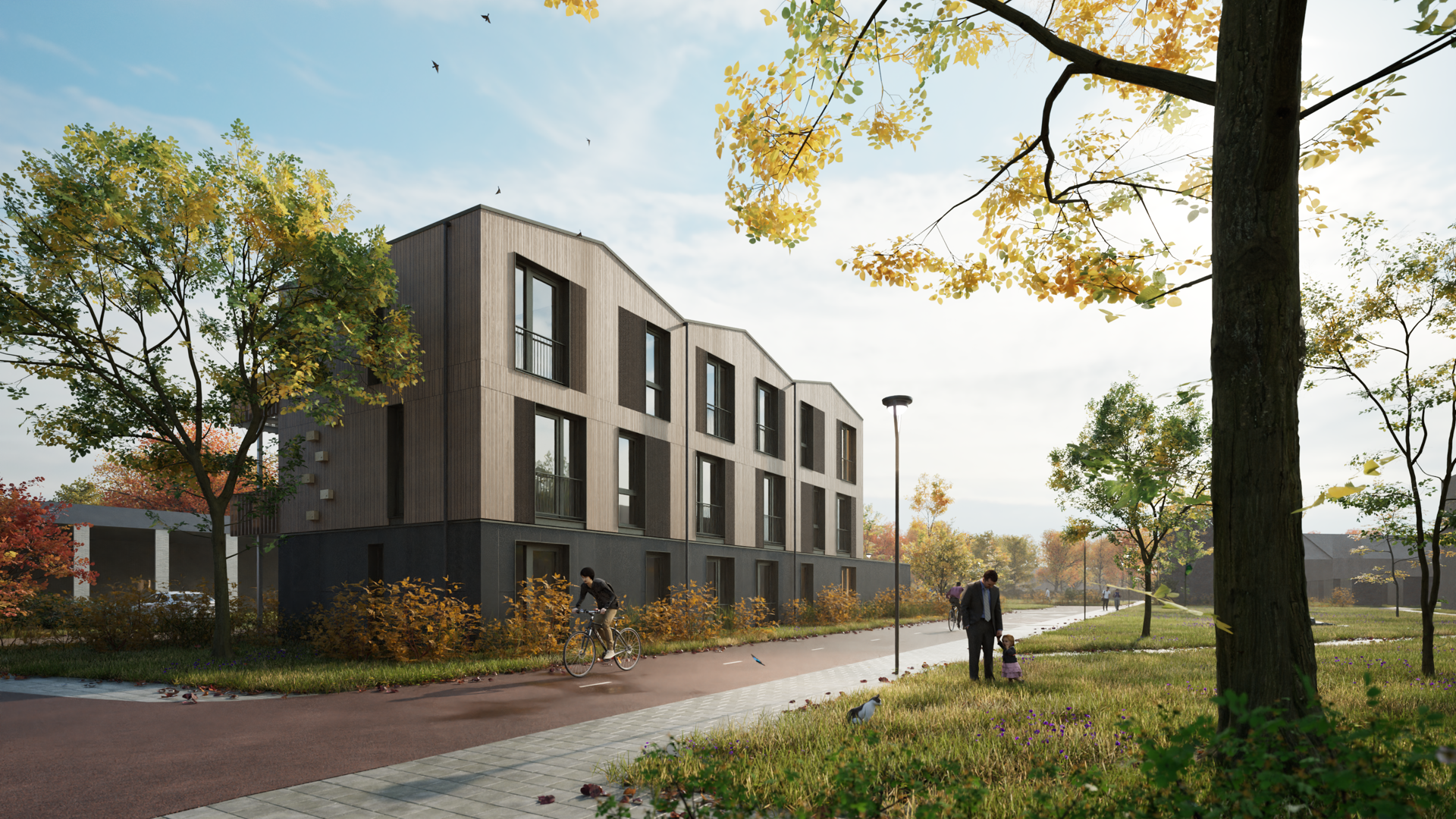 Bij de fietstunnel van het somaterrein bouwen we ongeveer 23 appartementen. Het gebouw blijft minstens 20 jaar staan.